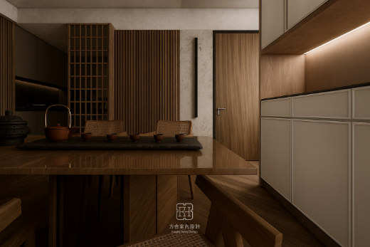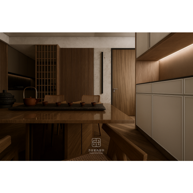 採光與動線:格柵屏風巧妙劃分公私場域,既保留視覺穿透感,又使動線更流暢。